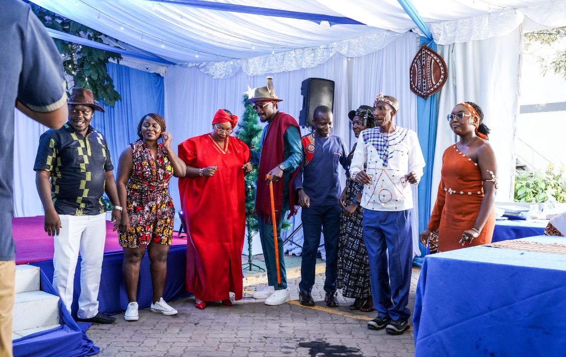 Davis & Shirtliff staff and the Group Chairman, cutting cake during christmas celebration